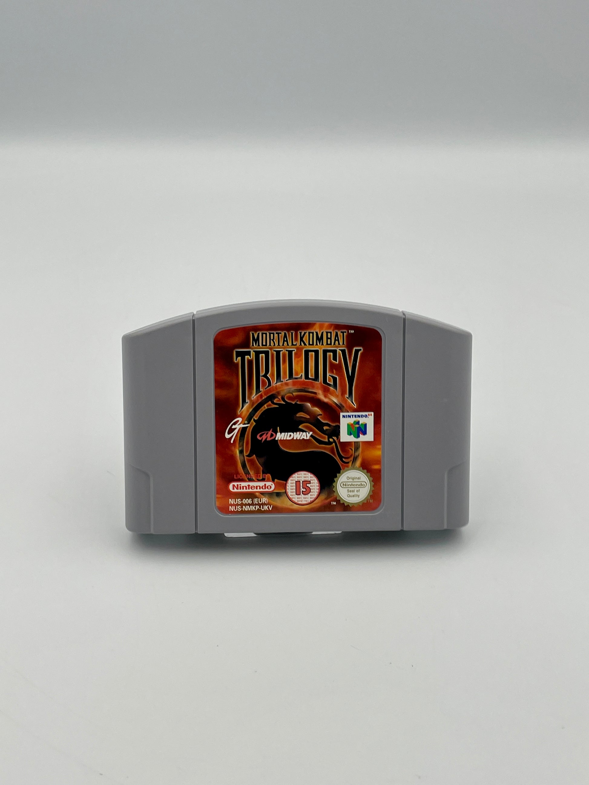 Mortal Kombat Trilogy for N64. Cartridge in great shape. A brutal N64 fighting game for fans of classic Mortal Kombat and arcade-style battles. Unleash every fighter in the franchise with Mortal Kombat Trilogy. This version is in great shape and a must for fans of brutal fighting games.